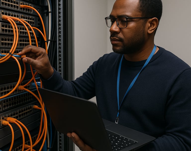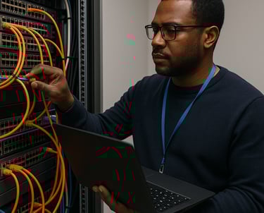 Nous assurons l’installation, la configuration et la maintenance de vos systèmes informatiques et réseaux, ainsi que la gestion de la cybersécurité et du support technique.